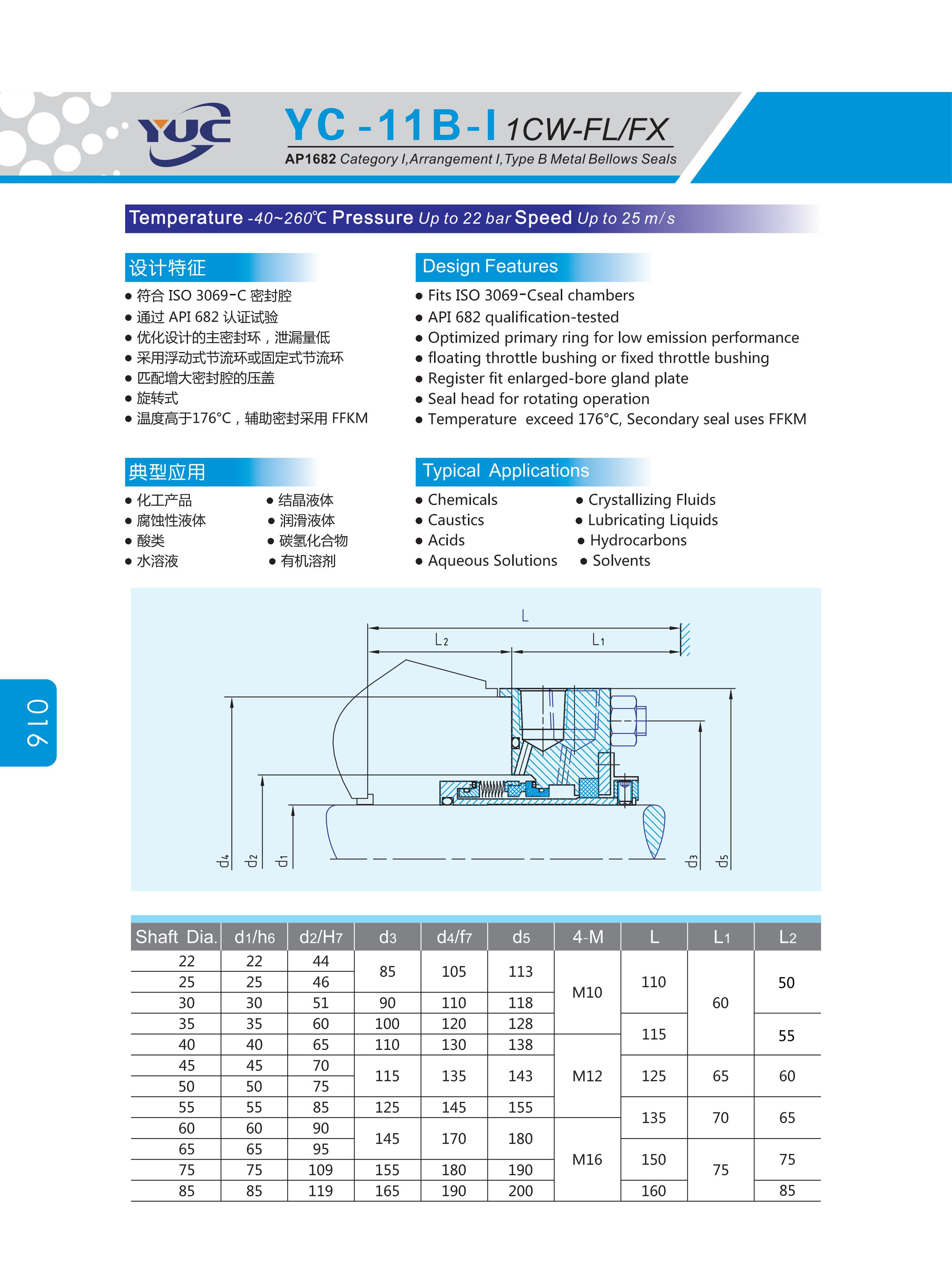 API682標(biāo)準(zhǔn)密封YC-11B-I/1CW-FL/FX