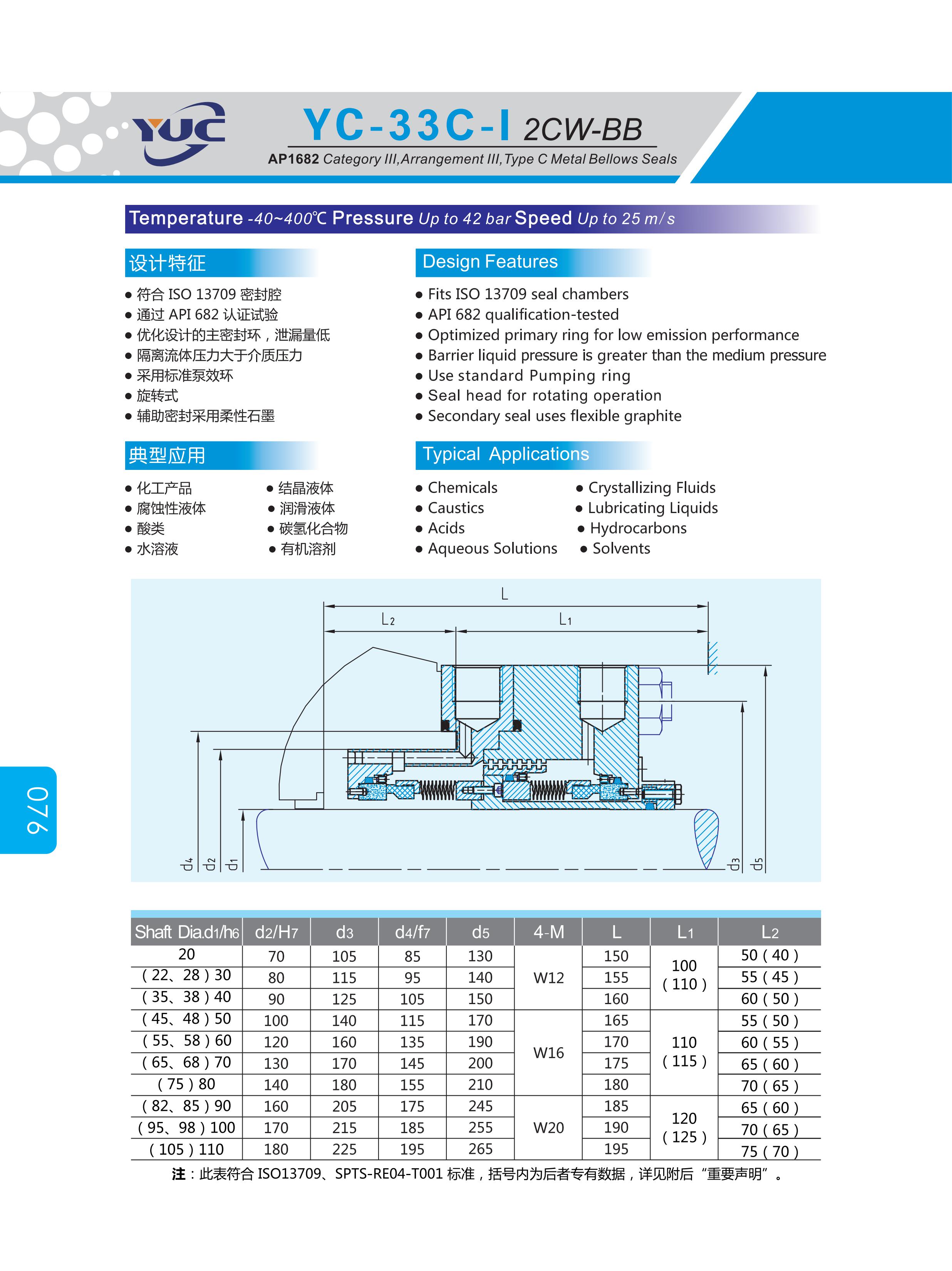 API682標(biāo)準(zhǔn)密封YC-33C-I/2CW-BB